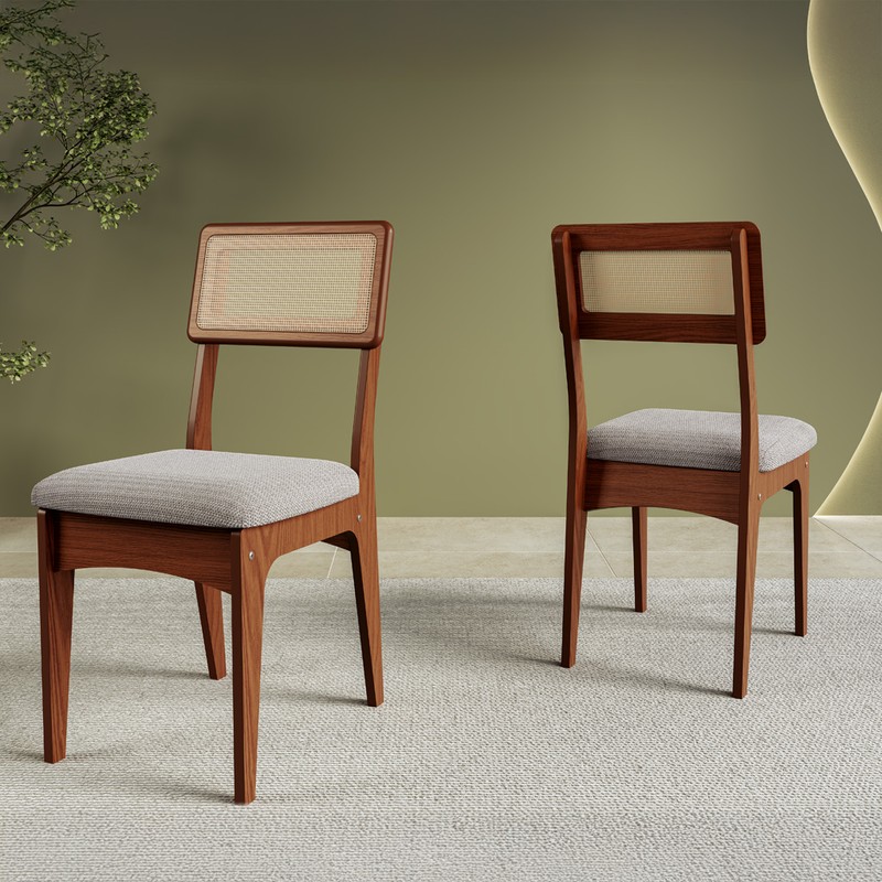 Kit 2 Cadeiras 100% Mdf com Encosto em Palha Sintética - Pinhão/Bege Claro J20